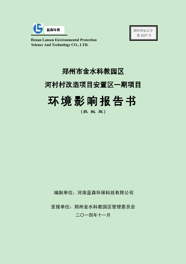 1、金水区-郑州市金水科教园区河村村改造项目安置区一期项目报告书1589