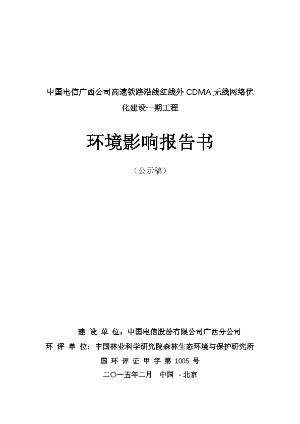 中国电信广西公司广西分公司高速铁路沿线红线外cdma无线网络优化伴有辐射的建设项目环境影响报告书审批248559434