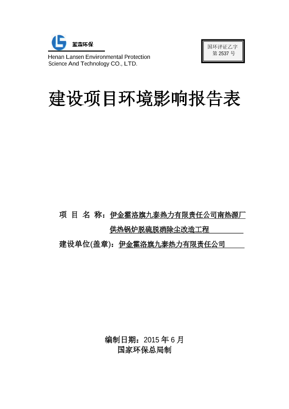 伊金霍洛旗九泰热力有限责任公司南热源厂供热锅炉脱硫脱硝除尘改造工程8977.pdf