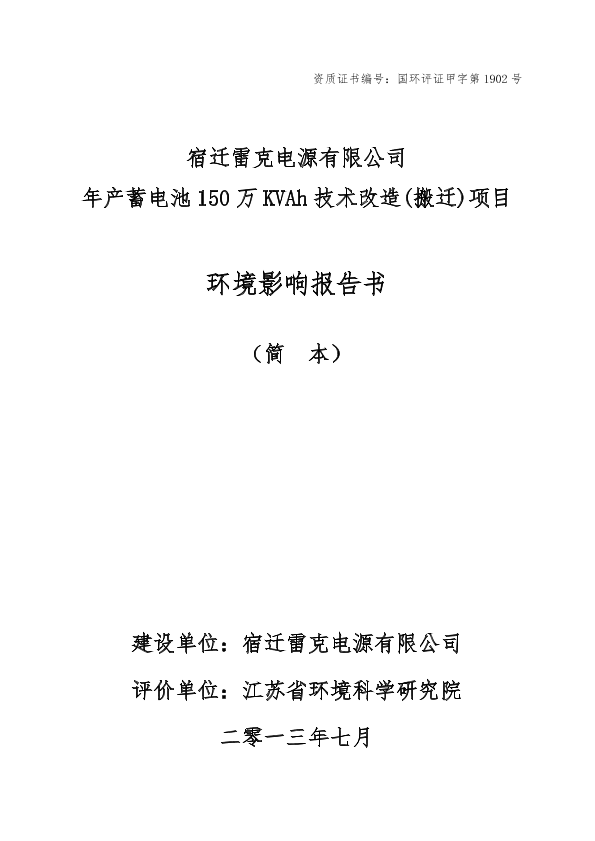 宿迁雷克电源有限公司年产蓄电池150万kvah技术改造(搬迁)项目_855981.pdf