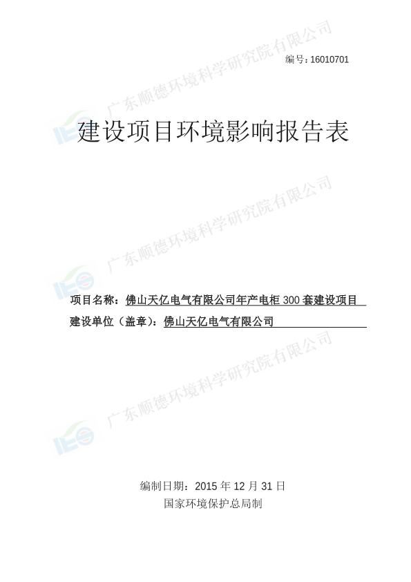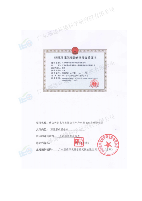 佛山天亿电气有限公司年产电柜300套建设项目报告表_7776.pdf