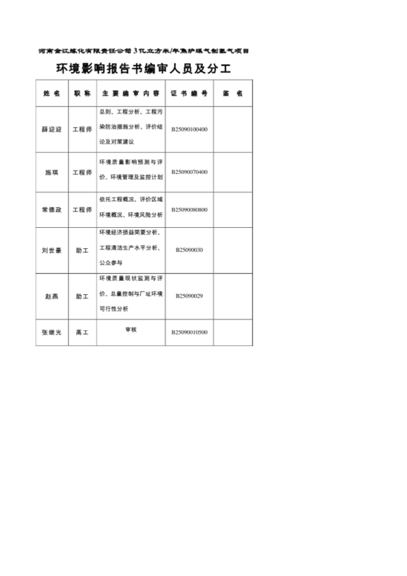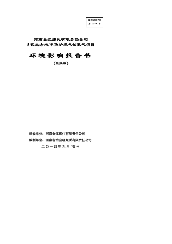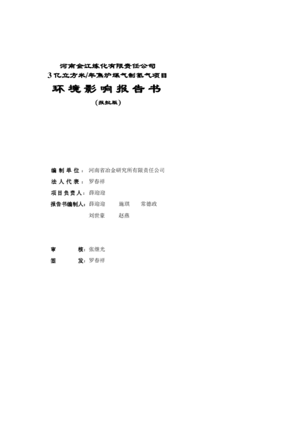 1、河南金江炼化有限责任公司3亿立方米_年焦炉煤气制氢气项目环境影响报告书