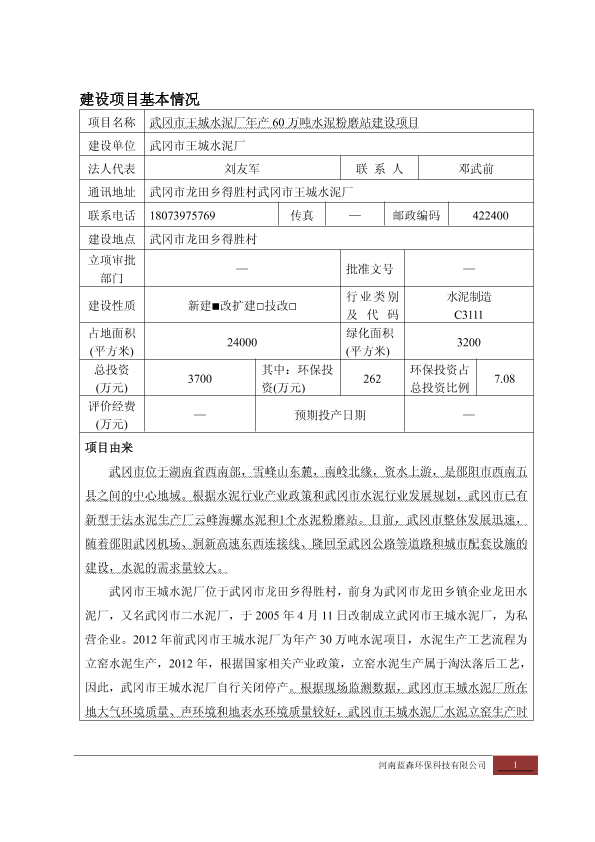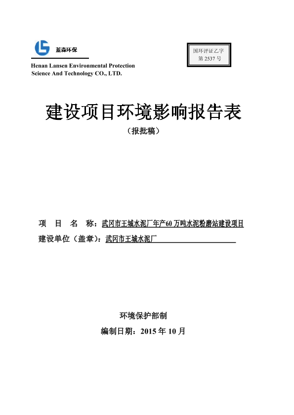 武冈市王城水泥厂年产60万吨水泥粉磨站建设项目受理情况公开121714605