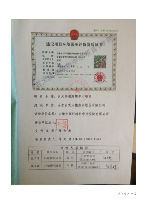 合肥百货大楼集团股份有限公司百大滨湖购物中心项目报告表_719211.pdf
