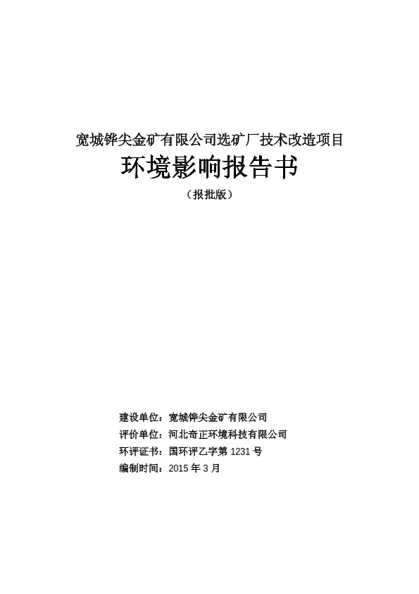 宽城铧尖金矿有限公司选矿厂技术改造项目环境影响评价文件的审批7083