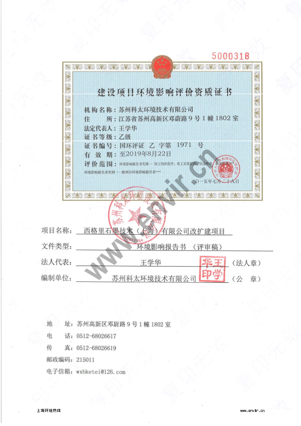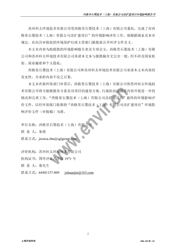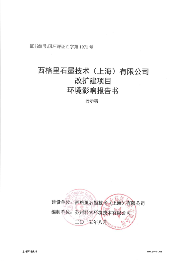 西格里石墨技术(上海)有限公司改扩建项目环境影响评价报批前公示4716 公开