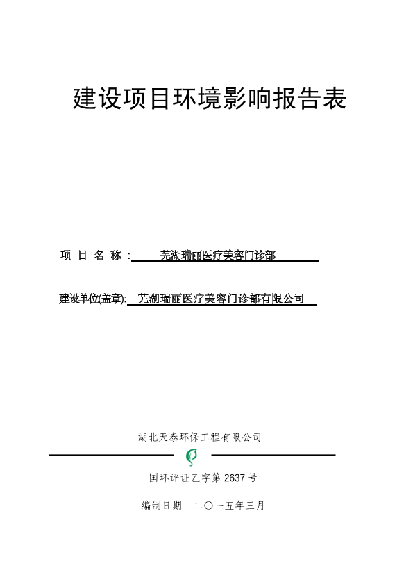 芜湖瑞丽医疗美容门诊部有限公司芜湖瑞丽医疗美容门诊部环境影响报告表公示_1064994.pdf
