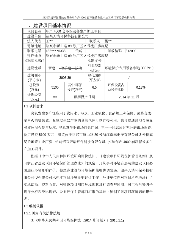 1、年产300套主机遥控及300套控制设备生产项目1508