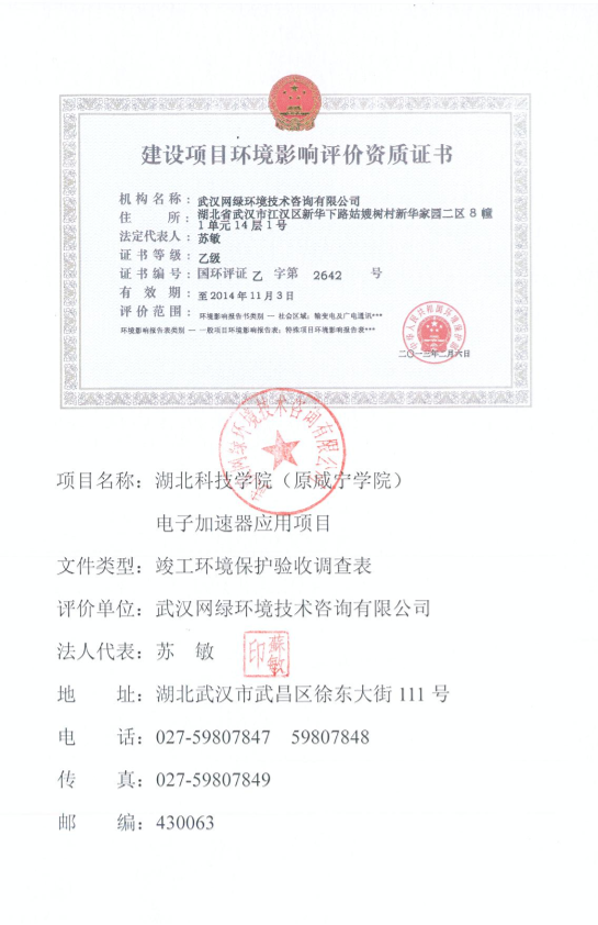 湖北科技学院(原咸宁学院)电子加速器应用项目9748