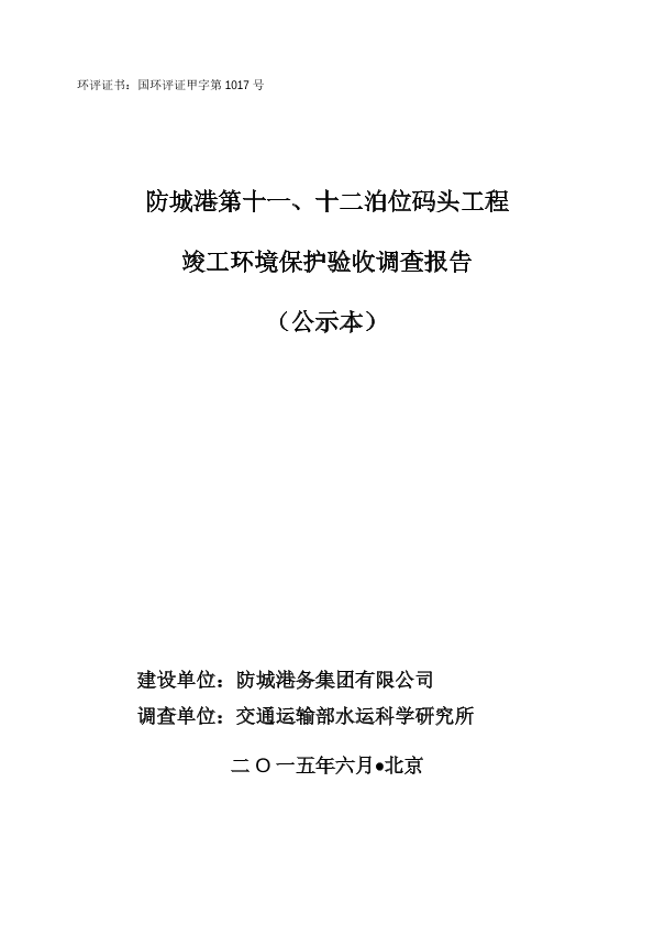 防城港第十一、十二泊位码头建设项目竣工环境保护验收197141351.pdf
