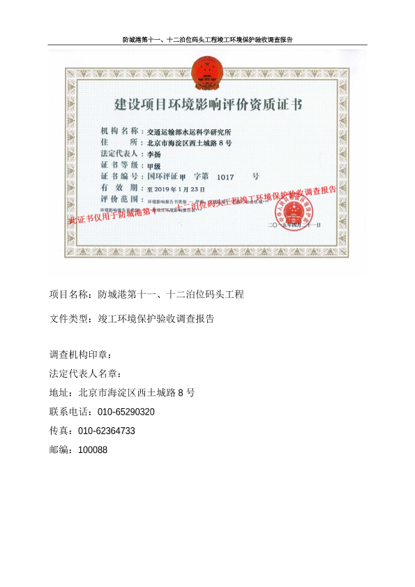 防城港第十一、十二泊位码头建设项目竣工环境保护验收197141351