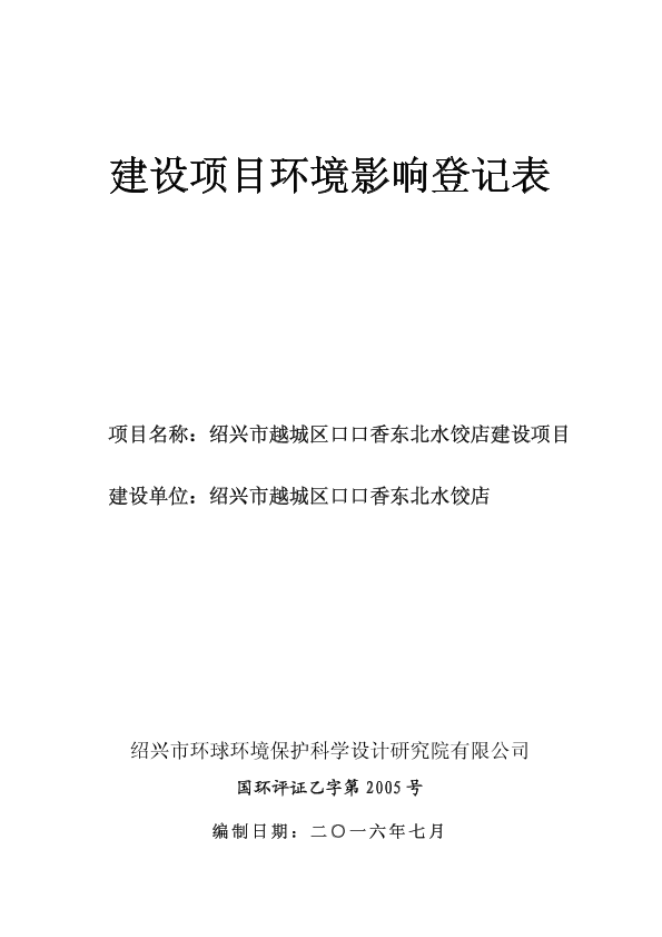 3、绍兴市越城区口口香东北水饺店 建设项目839613404