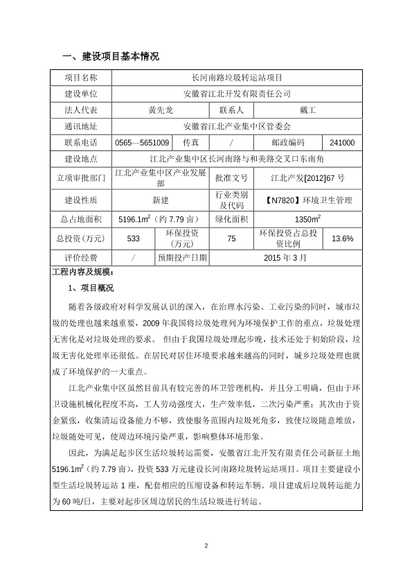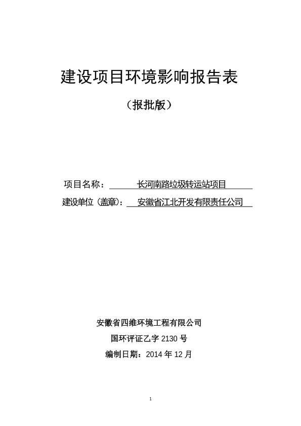 安徽省江北开发有限责任公司长河南路垃圾转运站项目环境影响报告表公示_1065885.pdf
