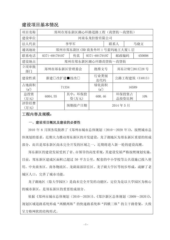 1、郑州市郑东新区龙湖区龙湖外环路道路工程(龙源一街—龙翼一街)