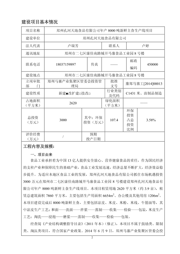 二七区马寨食品工业园区-郑州孔河天地食品有限公司年产8000吨新鲜主食生产线项目报告表4081.pdf