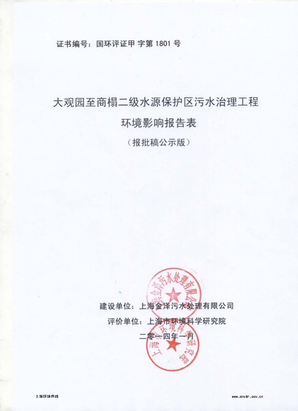 2、黄浦江上游水源地金泽水库工程环境影响评价报批前公示6060