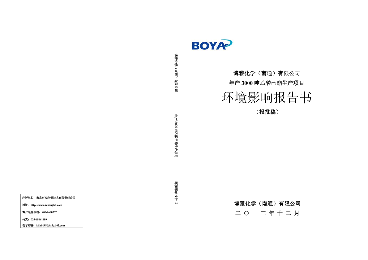 [环评报告]博雅化学(南通)有限公司年产3000吨乙酸乙酯生产项目