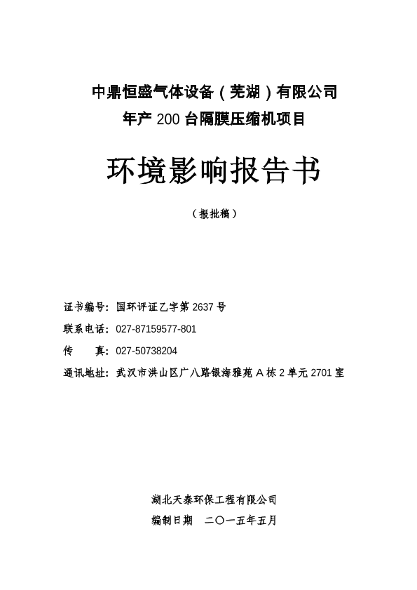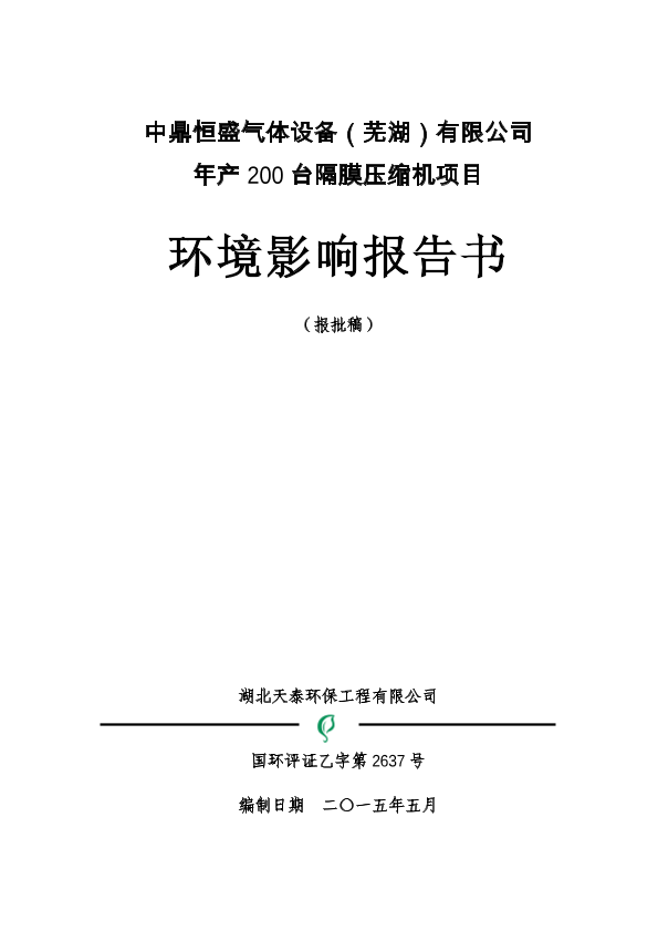 中鼎恒盛气体设备(芜湖)有限公司年产200台隔膜压缩机项目环境影响报告书公示_1069589.pdf