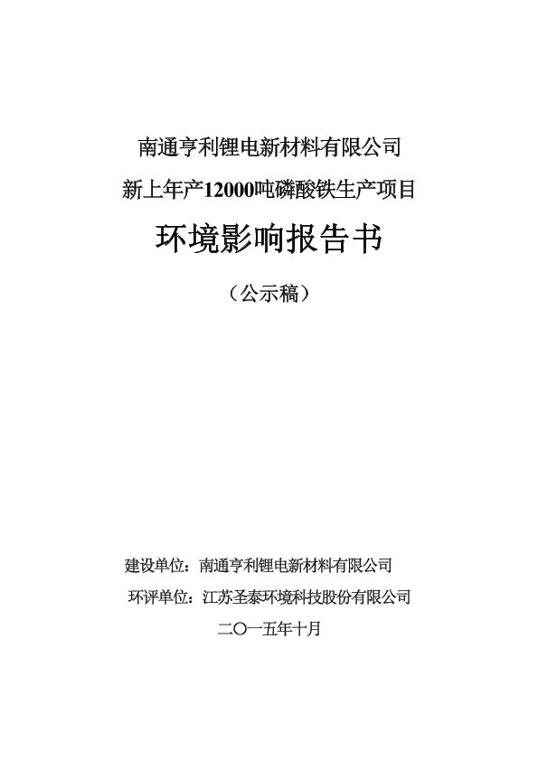 南通亨利锂电新材料有限公司新上年产12000吨磷酸铁生产项目环境影响报告书公示447875437.pdf
