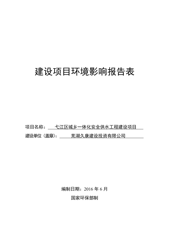 芜湖久康建设投资有限公司弋江区城乡一体化安全供水工程建设项目环境影响报告表公示871425602.pdf