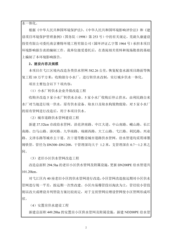 芜湖久康建设投资有限公司弋江区城乡一体化安全供水工程建设项目环境影响报告表公示871425602