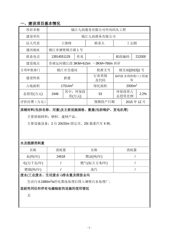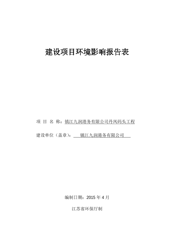 镇江九润港务有限公司丹凤码头工程环境影响报告表全本公示_92667.pdf
