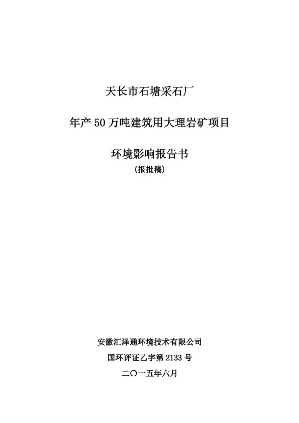 《天长市石塘采石厂年产50万吨建筑用大理岩矿项目环境影响报告书》受理公示_1032585.pdf