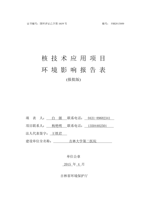 吉林大学第二医院粒子植入辐射项 目8530.pdf
