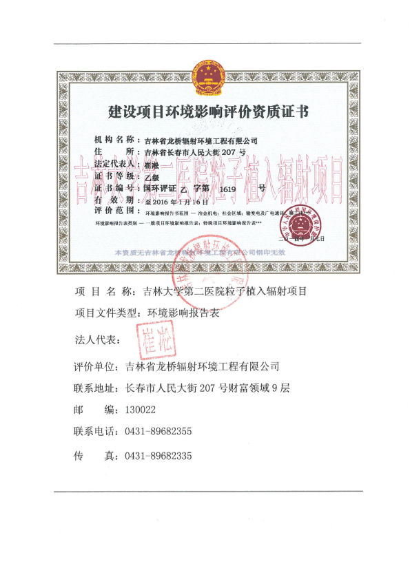 吉林大学第二医院粒子植入辐射项 目8530