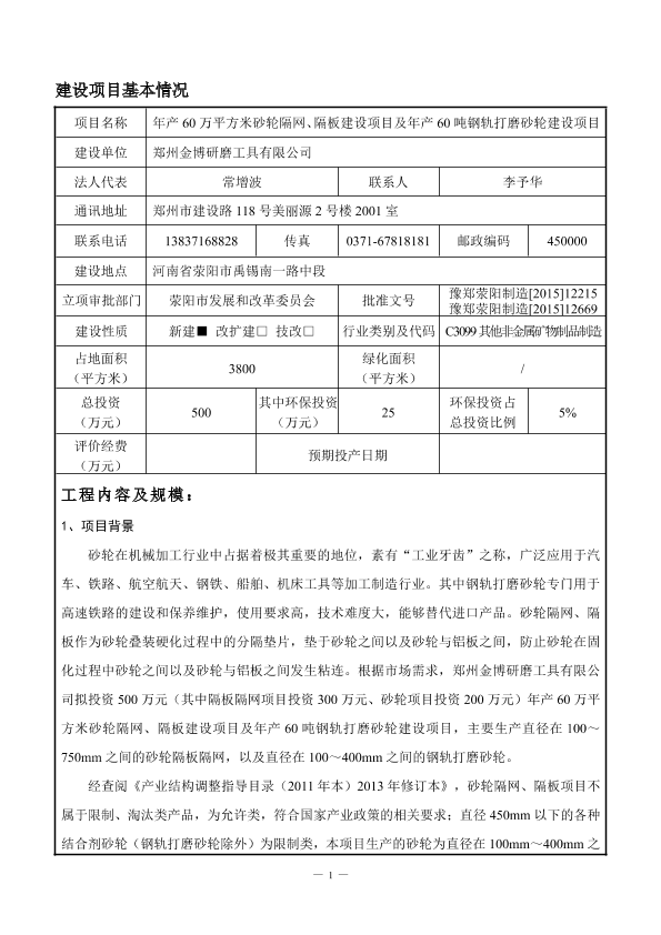 郑州金博研磨工具有限公司年产60万平方米砂轮隔网、隔板建设项目及年产60吨钢轨打磨砂轮建设项目3906.pdf