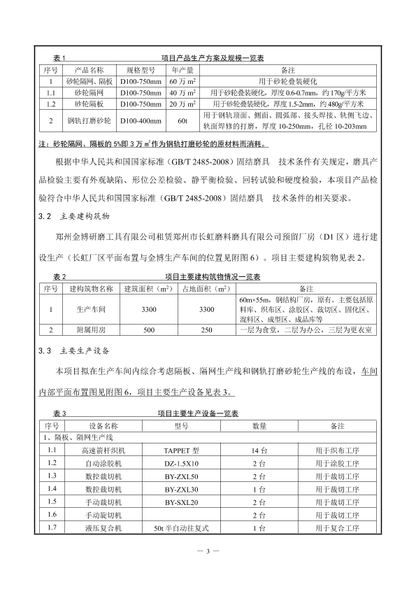 郑州金博研磨工具有限公司年产60万平方米砂轮隔网、隔板建设项目及年产60吨钢轨打磨砂轮建设项目3906