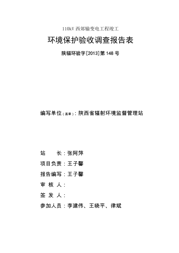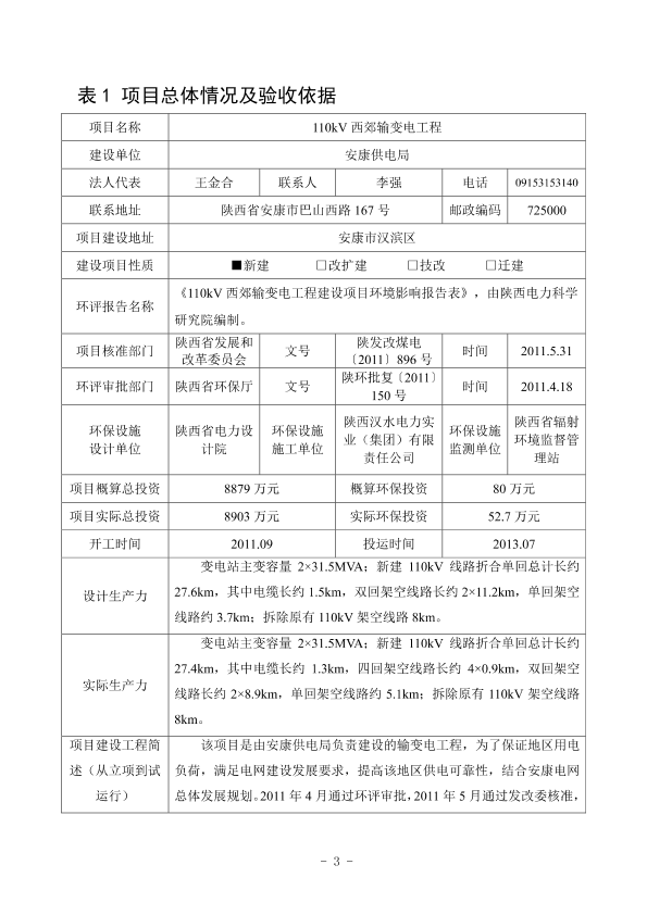 1、阎良南110输变电工程竣工验收报告表-报批稿3066
