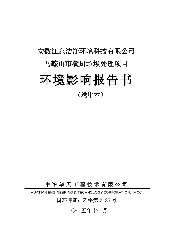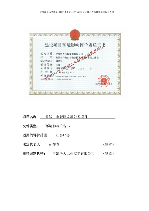 安徽江东洁净环境科技有限公司马鞍山市餐厨垃圾处理项目环境影响报告书受理公示a41713a6271 公开