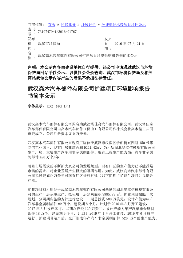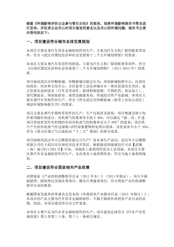 湖北-武汉高木汽车部件有限公司扩建项目环境影响报告书简本公示9069