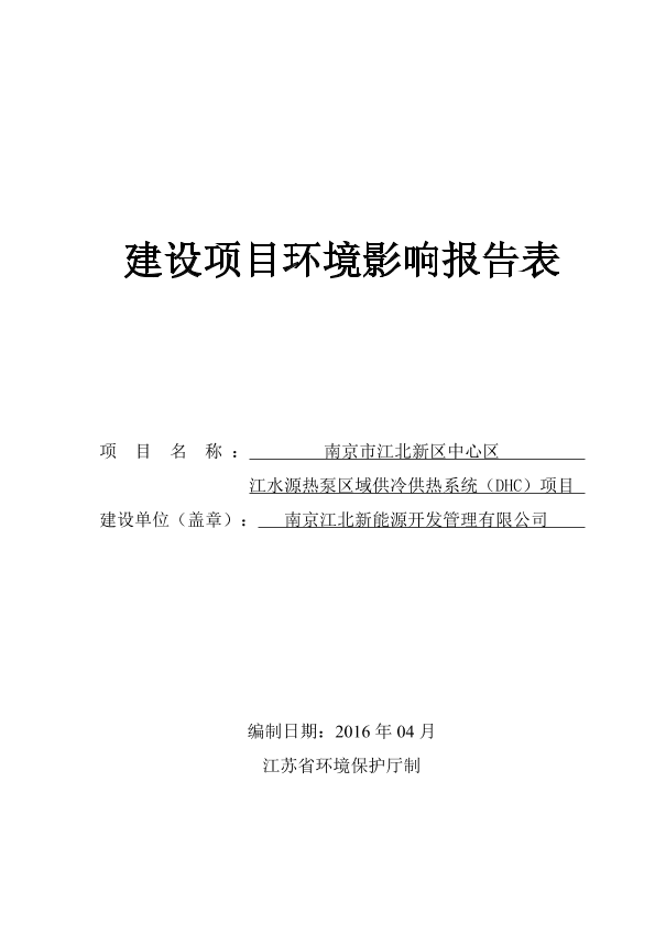 南京市江北新区中心区江水源热泵区域供冷供热系统(dhc)项目环境影响报告表全本公示3239.pdf