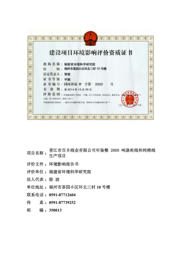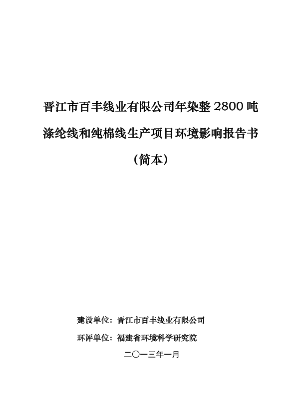 晋江市百丰线业有限公司年染整2800t涤纶线和纯棉线生产项目_7815.pdf
