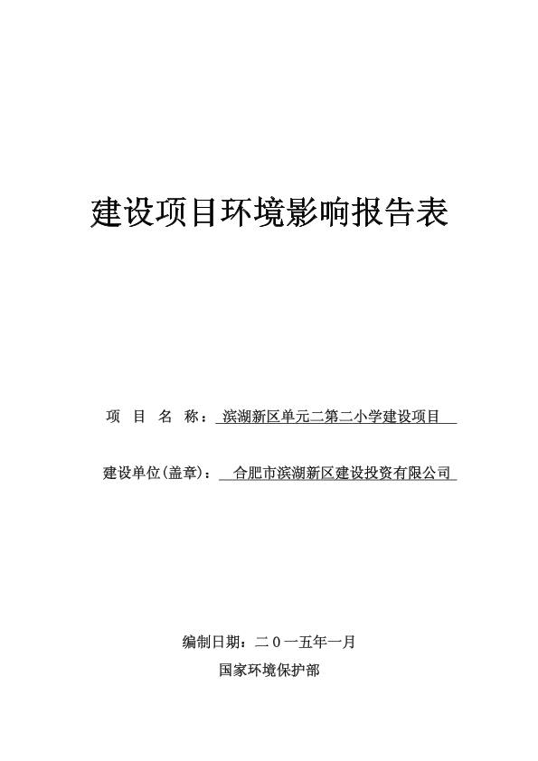 合肥市滨湖新区建设投资有限公司滨湖新区单元二第二小学建设项目 公开