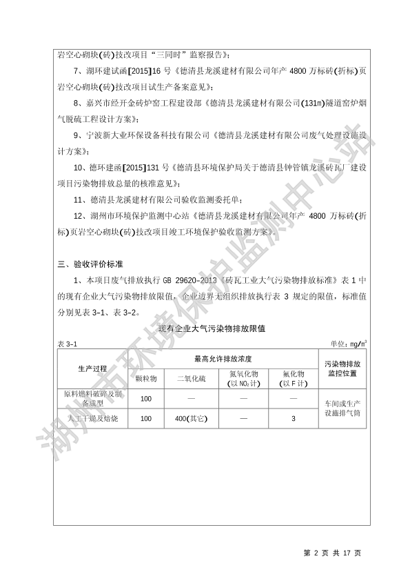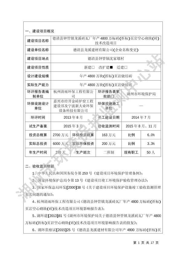 1、年产3400万块(折标砖)页岩空心砖项目审批受理公示