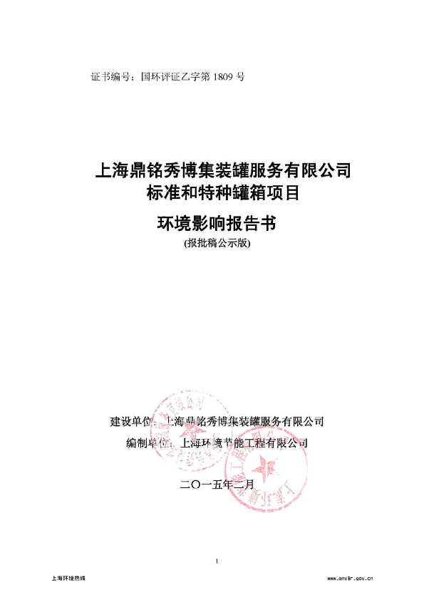 上海鼎铭秀博集装罐服务有限公司标准和特种罐箱项目环境影响评价报批前公示9204.pdf