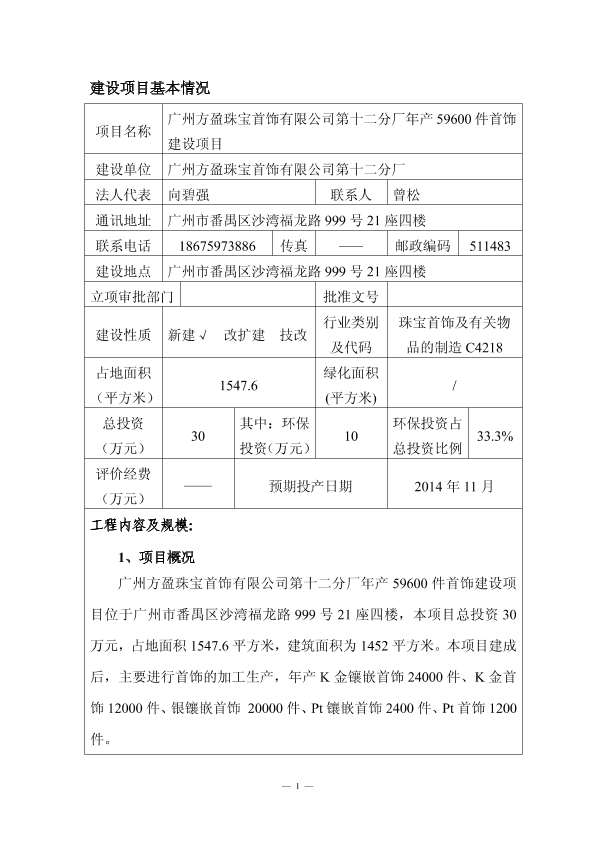 1、广州方盈珠宝首饰有限公司第九分厂扩建项目6208