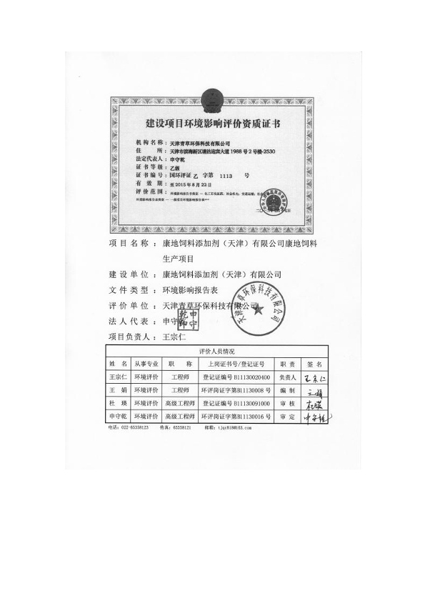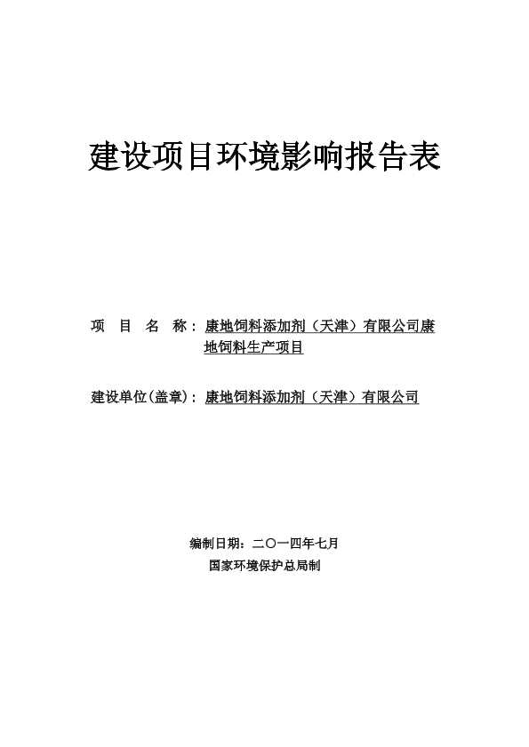 康地饲料添加剂(天津)有限公司康地饲料生产项目环境影响报告表受理情况公示-天津经济技术开发区环境保护局4011.pdf