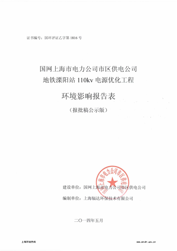 3、地铁新村站110千伏电源优化工程环境影响评价报批前公示4814