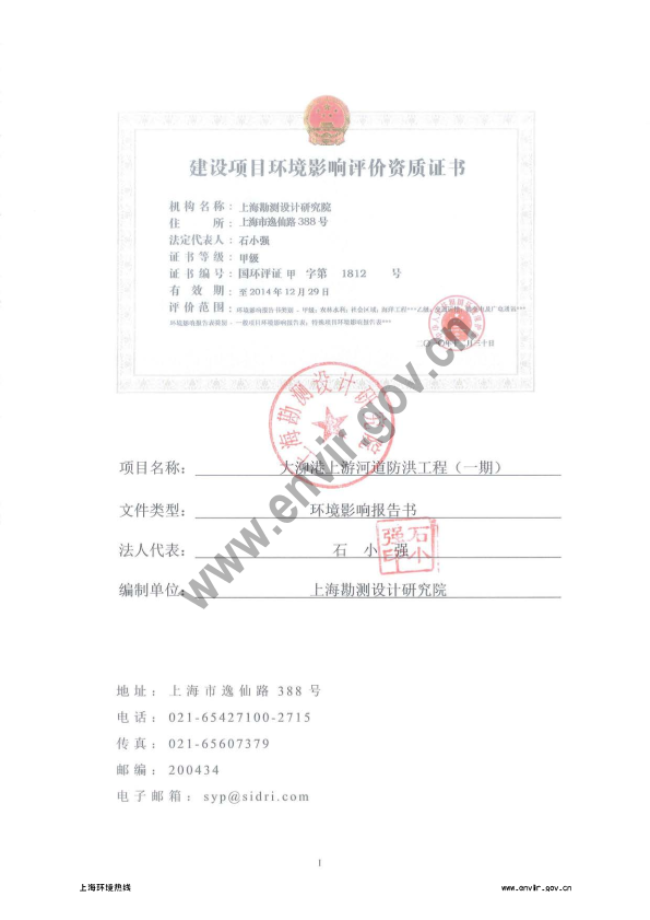 1、大泖港上游河道防洪工程(一期)环境影响评价报批前公示8014