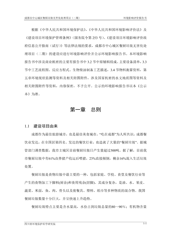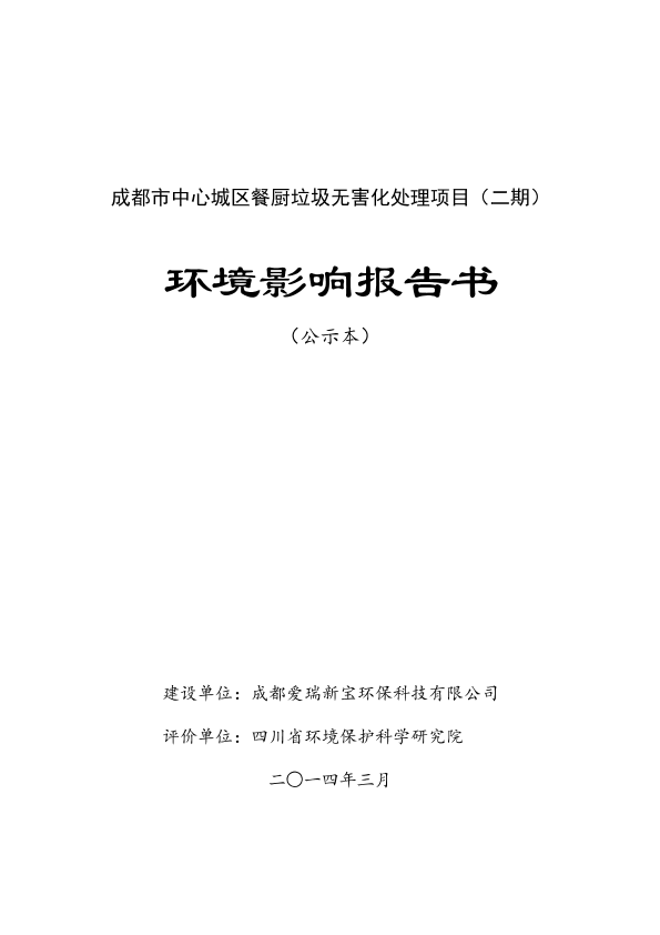 成都艾瑞新宝环保科技有限公司成都市中心城区餐厨垃圾无害化处理项目(二期) 公开
