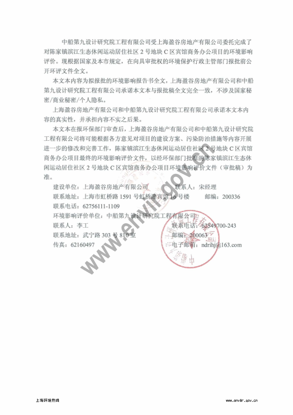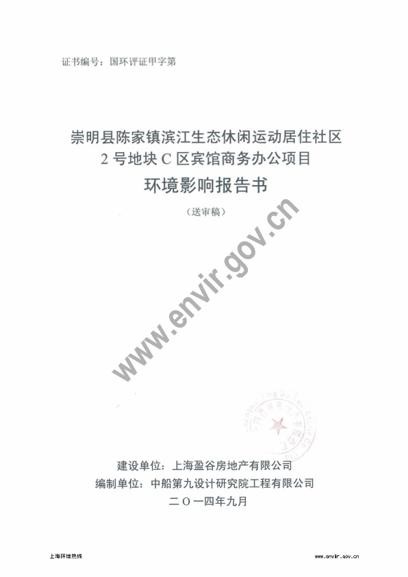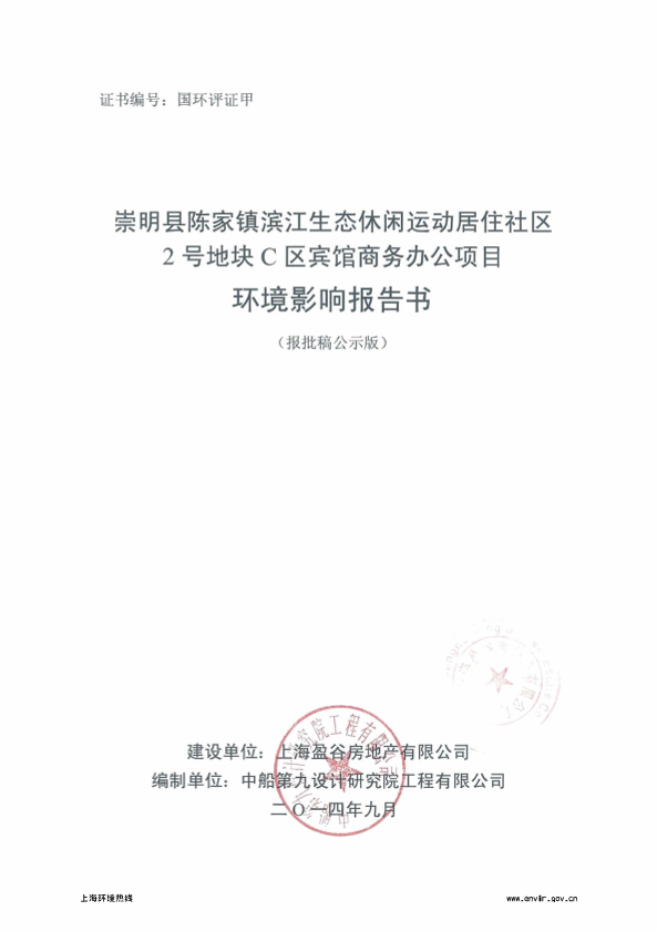 崇明县陈家镇滨江生态休闲运动居住社区2号地块C区宾馆商务办公项目环境影响评价报批前公示1730