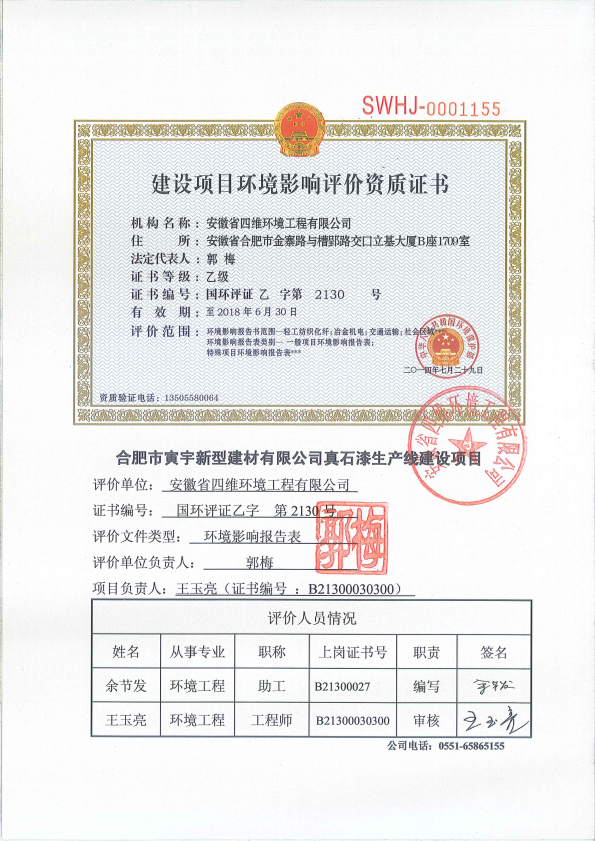 合肥市寅宇新型建材有限公司真石漆生产线建设项目 公开