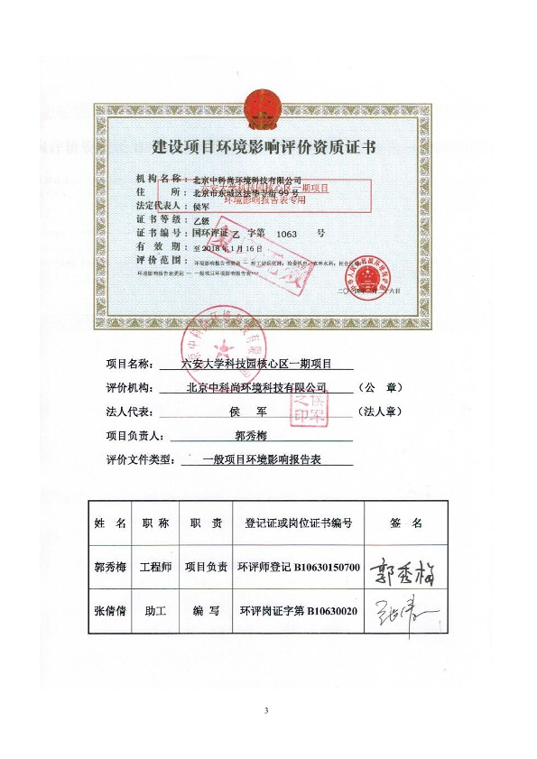 六安大学科技园核心区一期项目环境影响报告表审批前公示4021