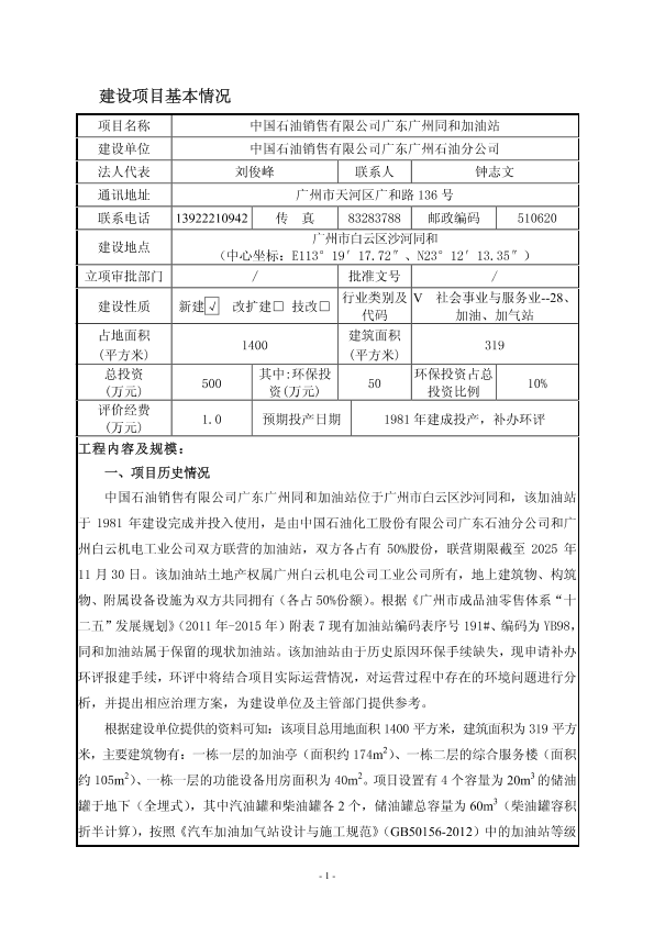 1、中国石化销售有限公司广东广州越泰加油站7189