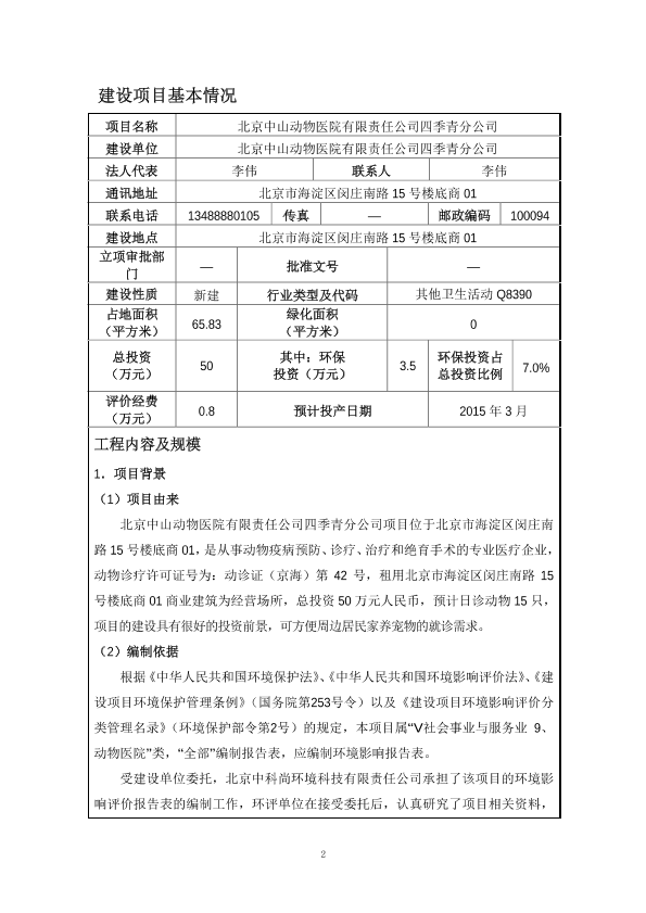 2、北京紫荆嘉园动物医院有限责任公司迁址项目1200