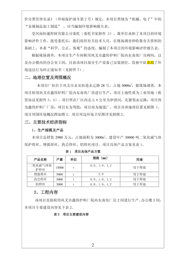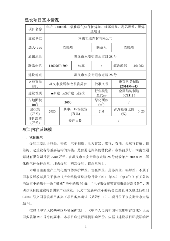 1、永安街道办-年产3万吨二氧化碳气体保护焊丝、埋弧焊丝、药芯焊丝、铝焊丝项目报告表8882